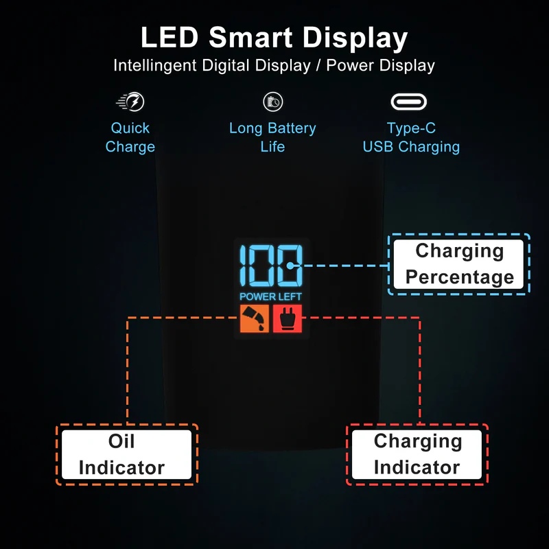 This trimmer supports USB Type-C for charging and takes about 4 hours to get back to a full charge. The inbuilt LED display shows very clearly the battery percentage and the state of charging.